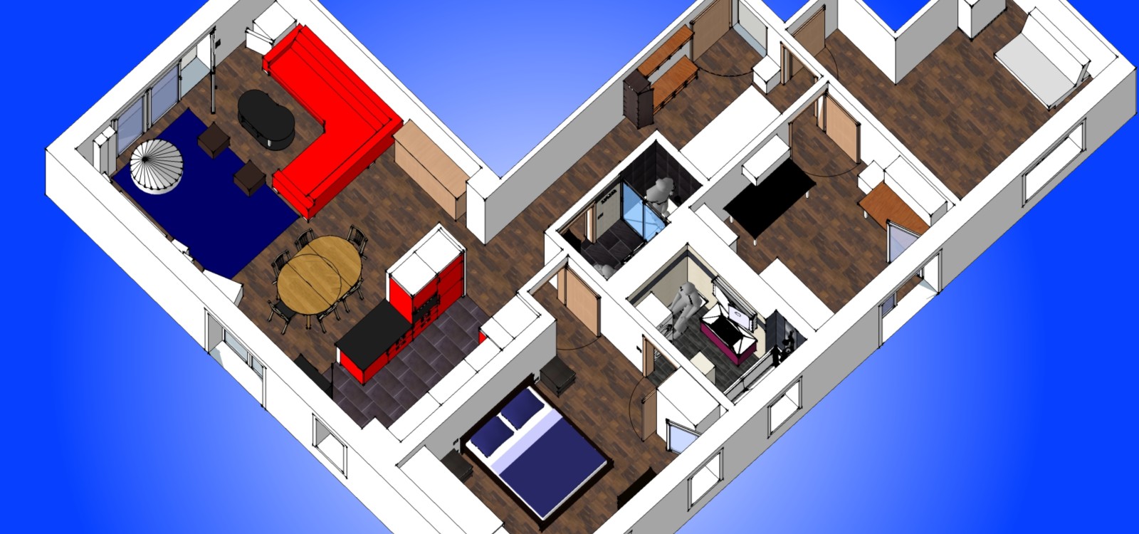 @Home : 3D drawing of our future flat, for wall and furniture placements, kitchen design and tile selection.